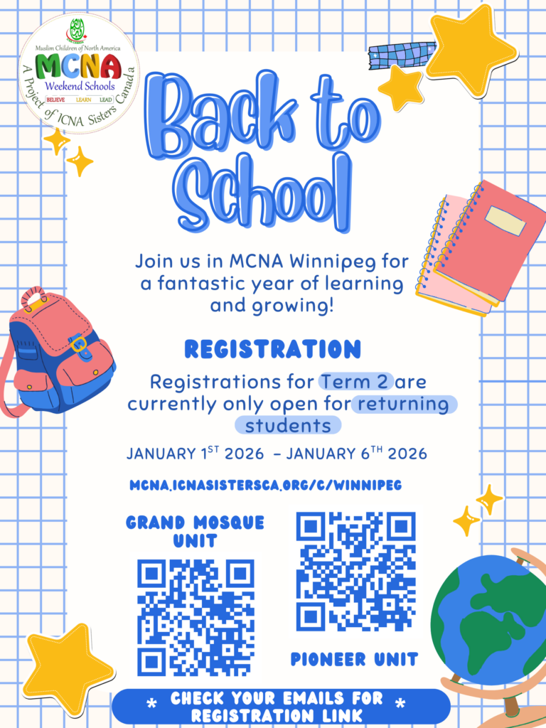 To be on the MCNA Winnipeg in-person classes waitlist, please email MCNA Winnipeg at mcna.winnipeg@icnasisters.ca